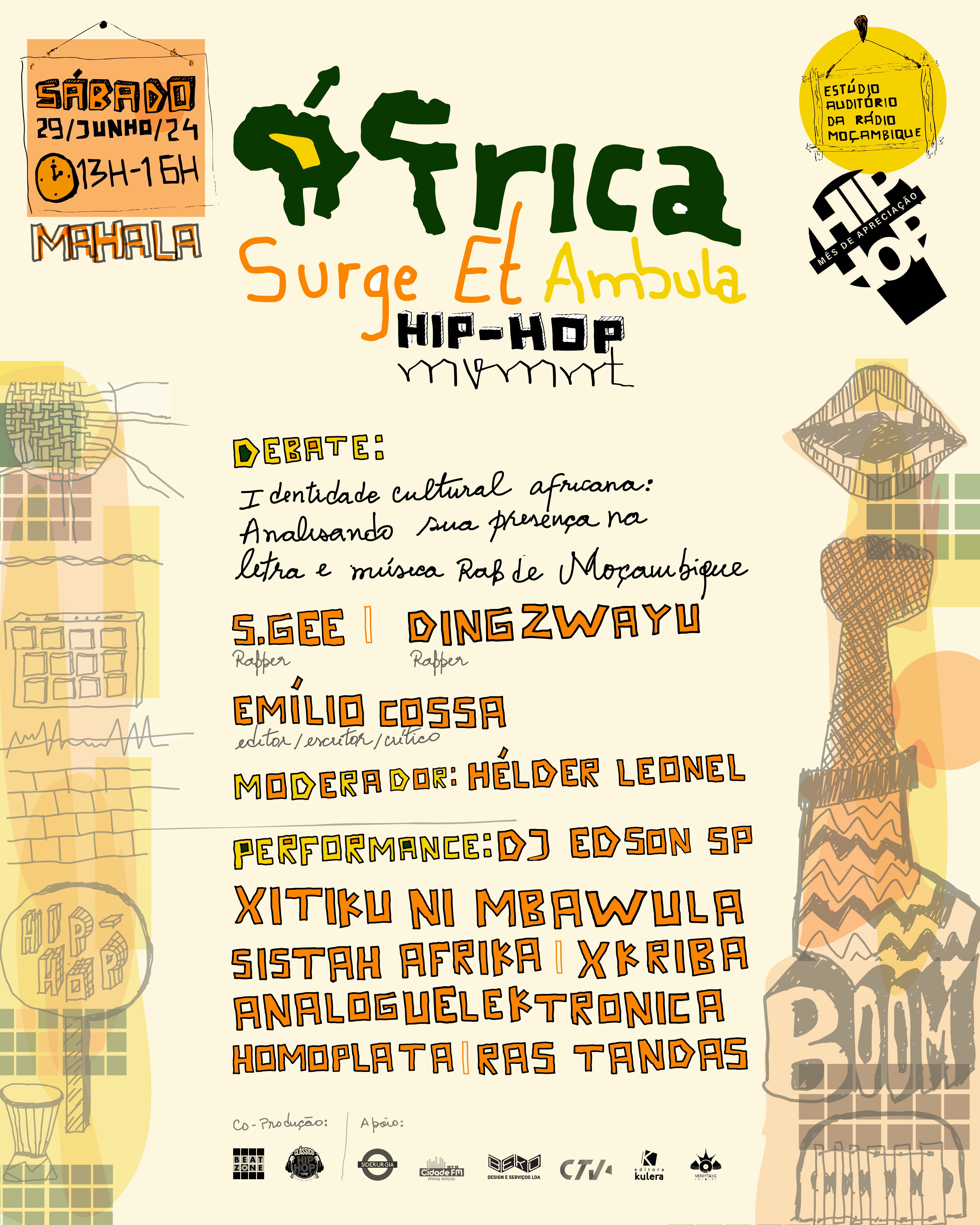 Data: Sábado, 29 de Junho de 2024Duração: 13h00 - 16h00Local: Estúdio Auditório da Rádio MoçambiqueEntrada: Grátis
